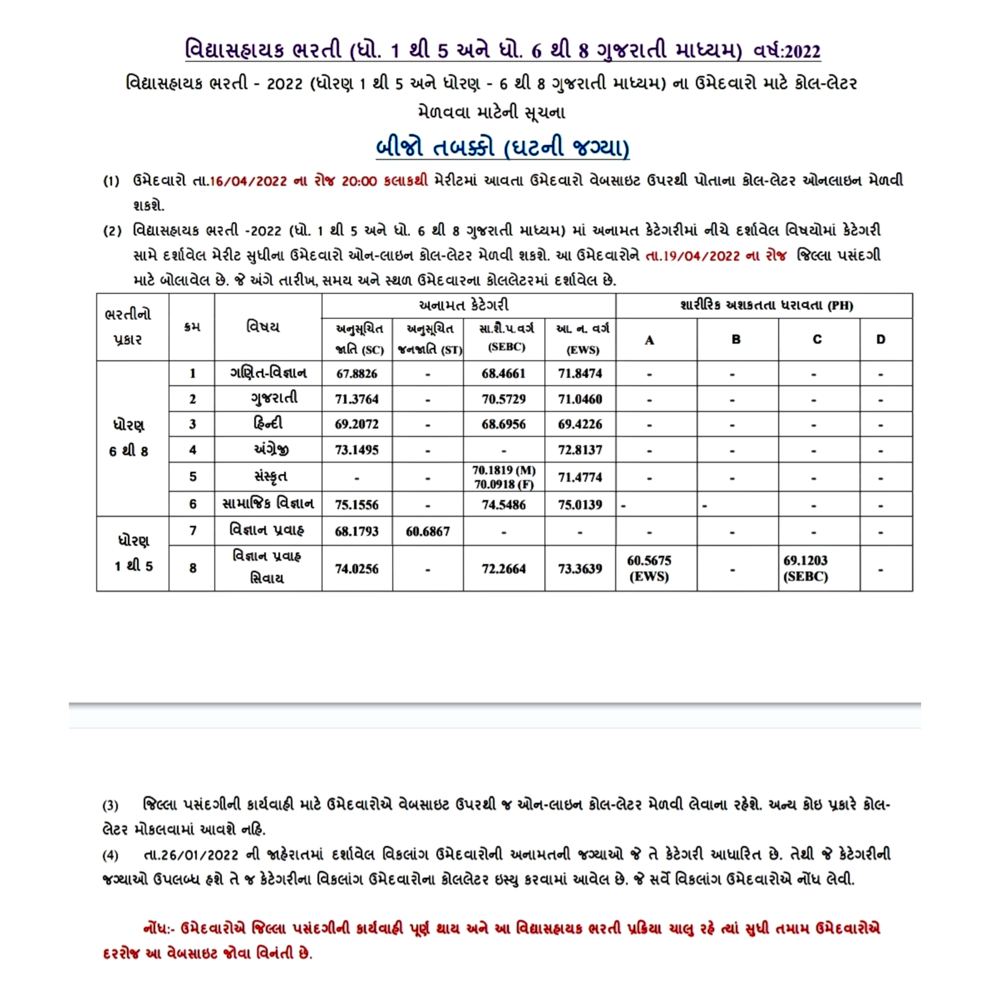 - 1️⃣💥વિદ્યાસહાયક ભરતીનો ઘટની ભરતીનો પ્રથમ રાઉન્ડ જાહેર